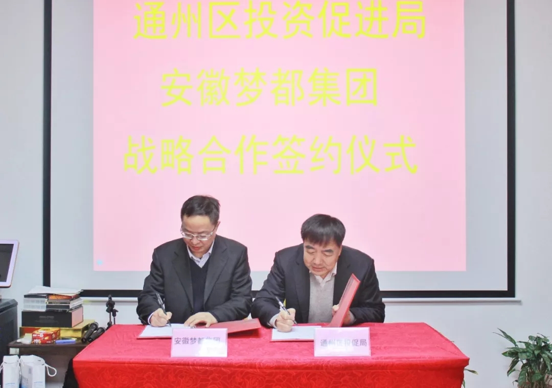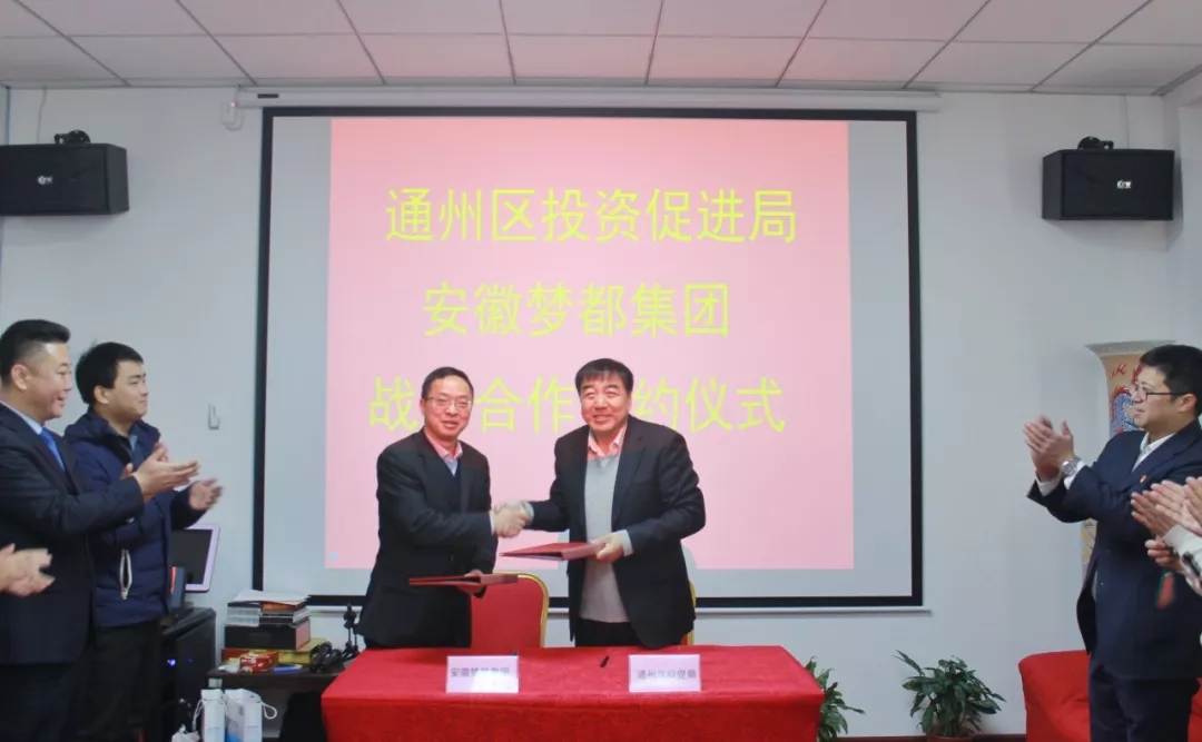 1月12日,北京市通州区投资促进局与安徽梦都集团签署战略合作框架协议。未来,双方将按照“优势互补、共谋发展、互惠互利、实现共赢”的原则,建立长期、全面、深度的战略合作,发挥各自优势,共同助力北京城市副中心建设。